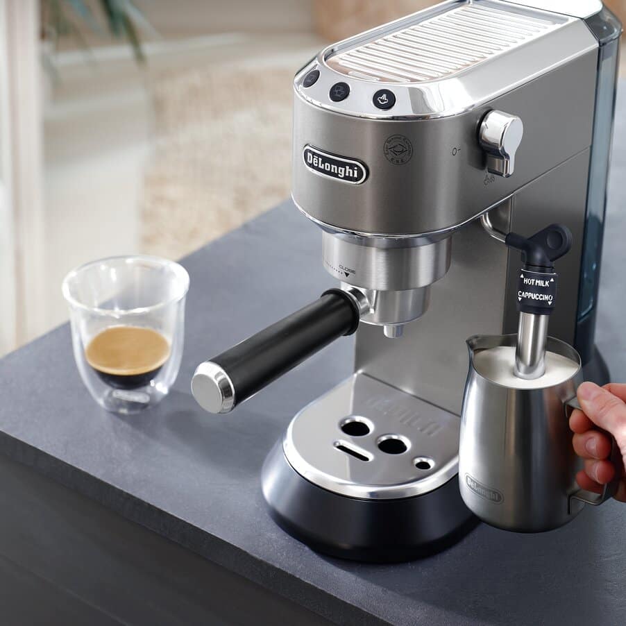 Genießen Sie Ihre Lieblingsdrinks zu Hause mit Dedica Style,einschließlich Einzel- oder Doppel-Espresso,cremigem Cappuccino und heißer Milch.