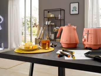 Wake up to creativity each morning with a kettle that embodies Italian craftsmanship, the De'Longhi Ballerina. Enrich your living space with its Sunset Orange shade inspired by Venetian glasswork, the perfect reflection of your personality. With 1.7l capacity, a detachable base for cordless use and a washable removable filter, this stylish kettle is a joy to use and a pleasure to admire.