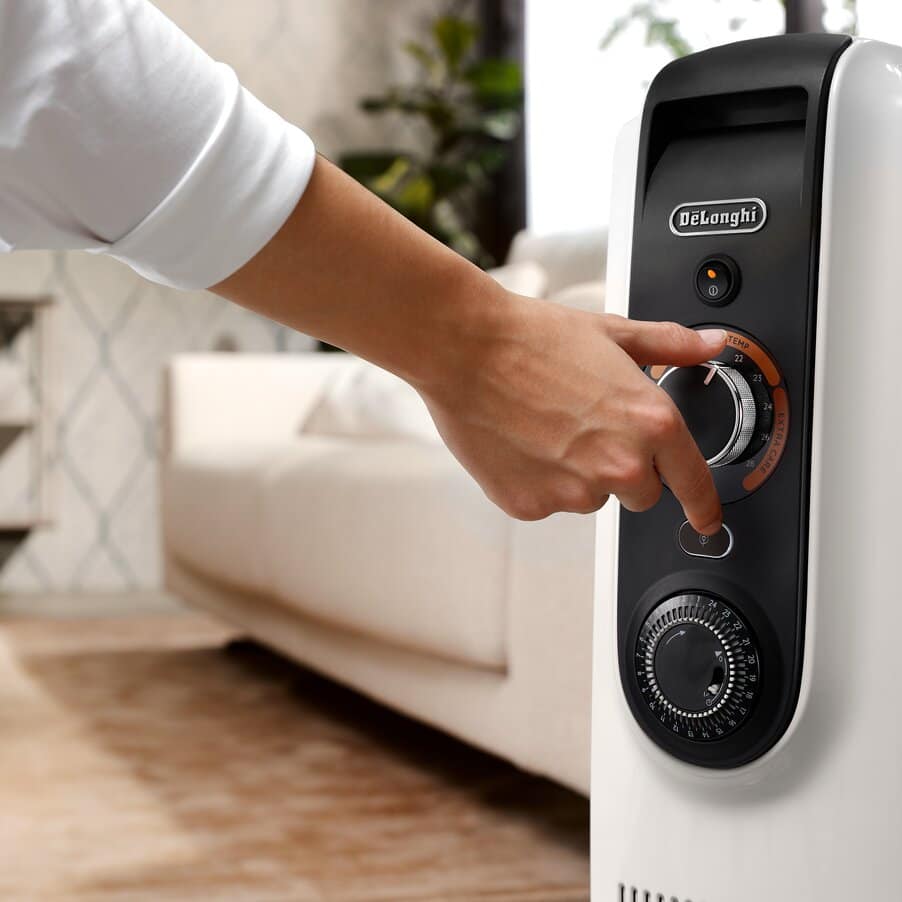 1 Energy consumption compared to a De'Longhi TRD4 (mechanical controls), tested in a 45 m3 room to maintain a stable comfort temperature of 22°C
