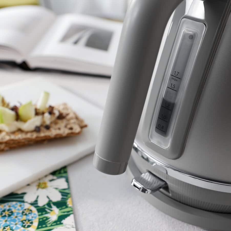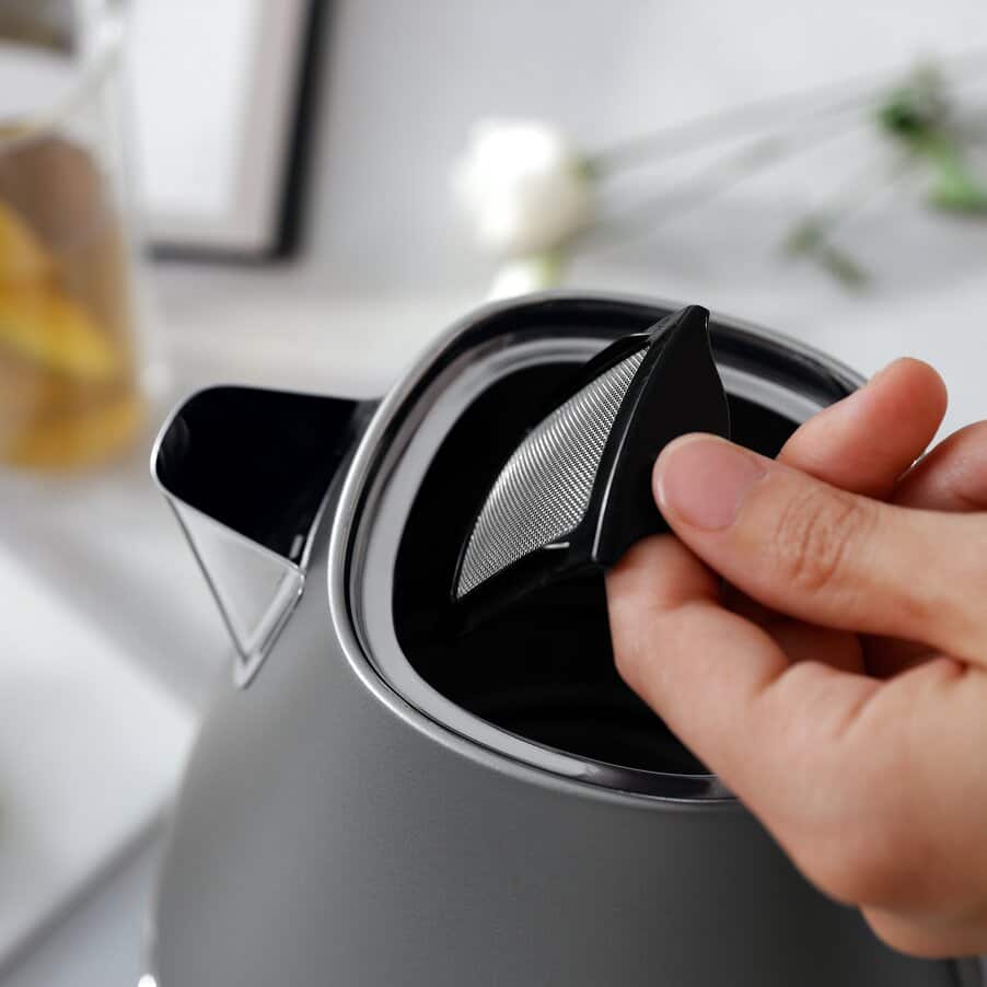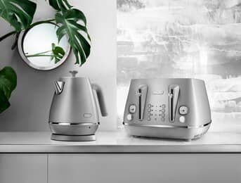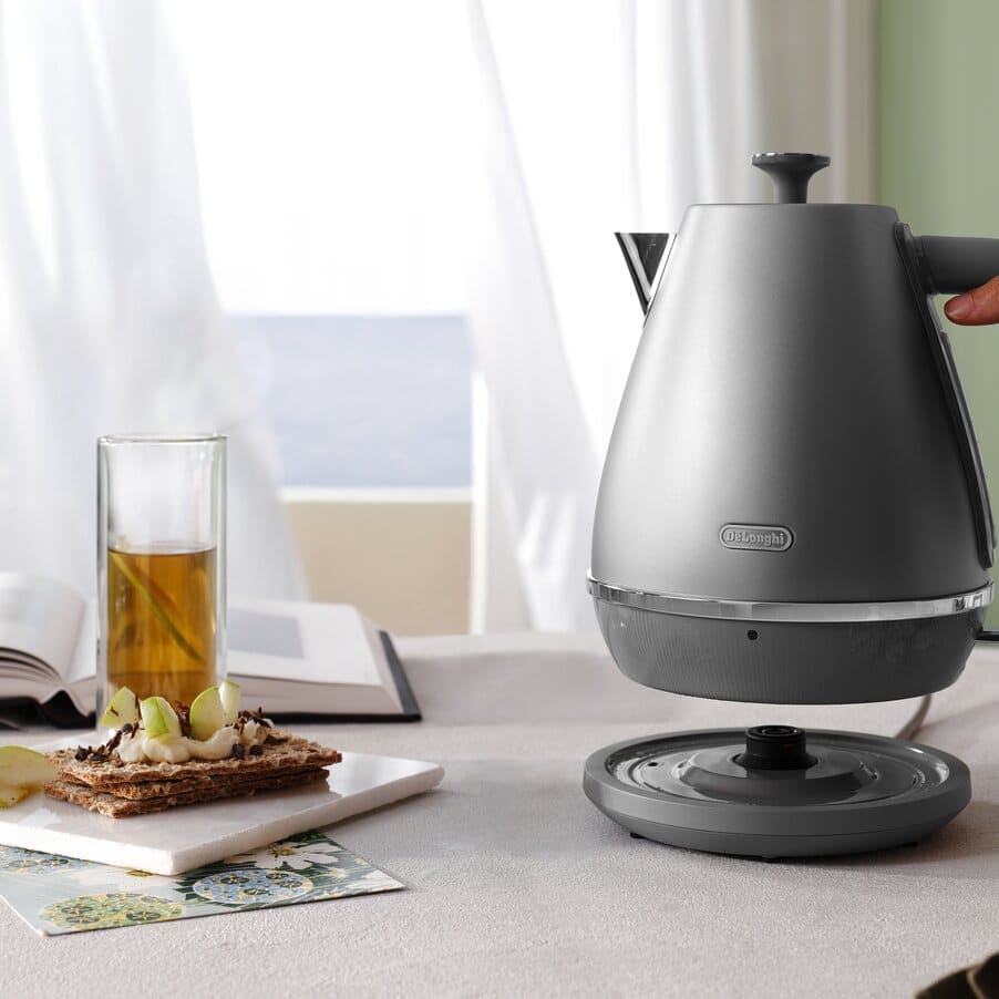 Rejoice at the pure elegance of this Distinta Perla kettle. The classic design in a contemporary shape adds a fresh and precious look to your kitchen. With convenient features including a 360° swivel base and washable water filter. The lustrous grey pearlescent finish releases glimmers of light, bringing a touch of sophistication to your kitchen.