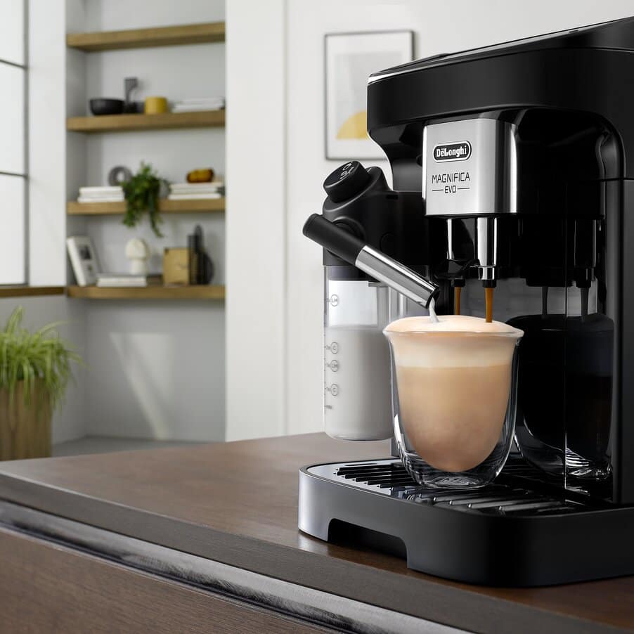 Magnifica Evo embodies the De'Longhi experience with its advanced technology, authentic drinks and sleek modern design. Serve the perfect Italian Espresso and a range of other drinks, topped with creamy milk foam thanks to LatteCrema Hot Technology, with no milk waste using the MyLatte function. You can choose from 7 one-touch drinks through the simple user interface.