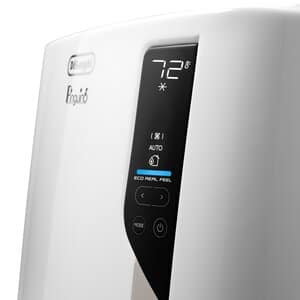 Stay ultra-comfortable with the De’Longhi PAC EL35HGRK Pinguino Plus Portable Air Conditioner with Heat Mode—an ultra-powerful 4-in-1 unit with cooling, heating, dehumidifying, and fan modes for rooms up to 500 square feet. Infused with De’Longhi’s signature Eco Real Feel technology, this model uses up to 30% less energy while delivering the most comfortable cool by auto-adjusting your room’s temperature and humidity. The unit is mindfully made with eco-friendly gas, Eco Real Feel technology, and a 24-hour timer that all work together to maximize energy efficiency. Enjoy cleaner air with the Washable Filter, designed to screen impurities from entering the unit. Better yet, it can be cleaned easily by simply running the filter under the faucet. Use the handy heat option to take the chill out of cool nights and mornings for true all-season coziness. Best of all, this portable unit lets you cool only the room you’re in so you can raise your household thermostat setting and lower your energy usage