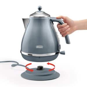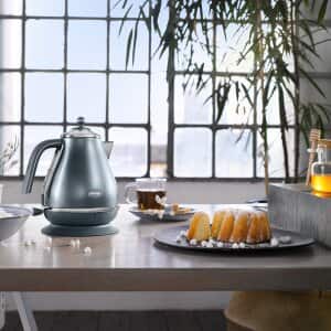 The De'Longhi Icona Metallics electric kettle delivers all the convenience you need in an attractive package. Easily fill to the desired level using the transparent water level indicator, and enjoy easy cleaning thanks to the removable anti-scale filter. The glossy azure finish of this kettle will add a tasteful splash of colour to your kitchen.