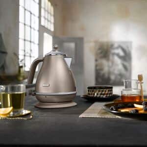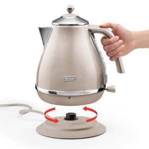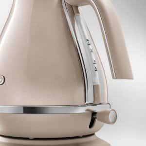 The De'Longhi Icona Metallics electric kettle delivers all the convenience you need in an attractive package. Easily fill to the desired level using the transparent water level indicator, and enjoy easy cleaning thanks to the removable anti-scale filter. The glossy beige finish of this kettle will add a modern touch of class to your kitchen.