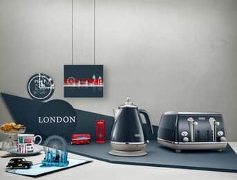 Travel the world from your kitchen with De'Longhi's Icona Capitals toaster range. Stylish Italian form is enhanced by a glossy, rich blue finish that captures the iconic spirit of London, adding a touch of urban style to your home. Enjoy ultimate ease of use and 6 browning levels for toast tailored to your taste with this modern breakfast essential.