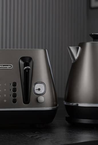 Sensuous silhouettes meet the strength and vitality of precious metal. Discover Distinta Titanium, the new breakfast collection from De'Longhi that unites Italian design with effortless functionality.