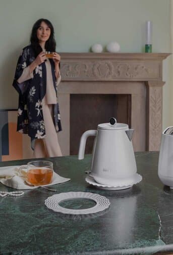 Enjoy a seamless and splash-free pour of water, thanks to the innovative spout, and the freedom to place the kettle anywhere facing any direction on its cordless, 360° base. Mood change? Express your kettle’s style and your unique taste with Eclettica’s interchangeable saucers, inspired by timeless crochet design.