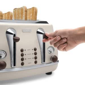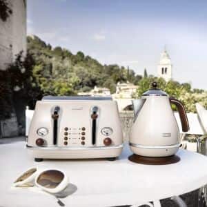 Bring iconic Italian design and retro style to your kitchen with the De’Longhi Icona Vintage toaster. Effortless functionality and intelligent design combine to create a simple, pleasant experience. The glossy, warm beige finish references the sandstone facades of Rome, combined with the brown textured trim inspired by traditional Italian craftsmanship. Bring delight to your everyday with De’Longhi.