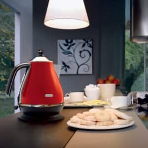 - Add an exclusive touch of class to your kitchen with the Icona design in rich red with chrome details