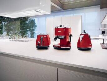 - Add an exclusive touch of class to your kitchen with the Icona design in rich red with chrome details