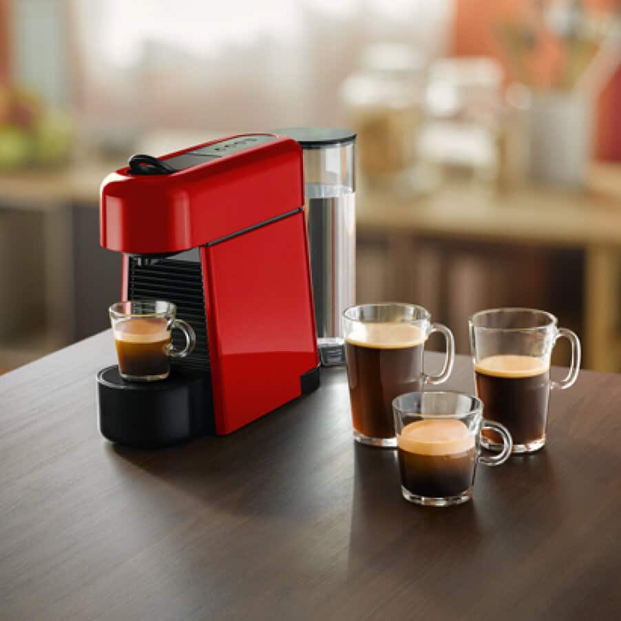 Fitting any kitchen, Nespresso Essenza Plus is always there when you need it. This versatile machine can make Espresso, Lungo, Americano and even has a dedicated hot water option for Tea. The Essenza Plus is a connected machine with an easy capsule reordering button. It’s here for you, and anybody else you want to treat. To fully match your tastes, it comes in two distinctive shapes and colors. Making sure it’s always the right fit. To top it all, it even has a smart reordering system at the touch of a button. So it won’t let you run out of your favorite capsules. And to show you how much it cares about your coffee, it even sends out an alert when it needs descaling. A little plus, which might just be essential.