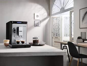Craft your perfect cup with Eletta, De'Longhi's modern automatic coffee machine. Finish your coffee with a velvety soft layer of milk foam for an authentic Italian cappuccino or prepare two espresso cups at once for those special moments shared with a friend. Make every coffee an occasion with this compact black and silver Italian designed coffee maker.