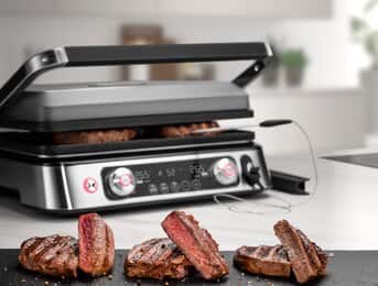 Enjoy meat that's perfectly grilled on the outside and nice and tender and juicy on the inside thanks to the sear function,with plate temperatures of up to 265°C.