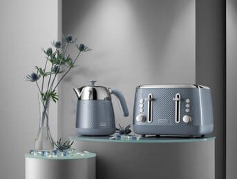 Enjoy the convenience and intuitive controls of the De’Longhi Luminosa electric toaster, in a relaxing hue of Twill Blue. Bring glimmering light reflections to your kitchen with the rich matelassé finish, adding a precious touch to minimalist kitchens or reinforcing the glamour of more classic ones.