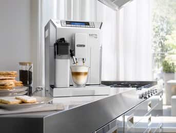 Mejora tu día a día con Eletta Cappuccino, la innovadora cafetera superautomática de De'Longhi. Saborea un suave café con leche o prepara dos tazas de espresso a la vez y disfruta de tu café en compañía. Este elegante diseño de acero inoxidable y blanco combina la tecnología de las cafeteras de vanguardia con el inconfundible estilo italiano, y se adapta perfectamente a cualquier cocina moderna.