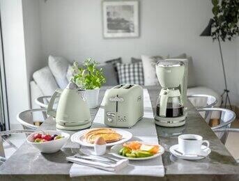 Nauti herkullisesta al fresco -aamiaisesta kesäpuutarhassa käyttämällä kahden viipaleen Peppermint Green -leivänpaahdinta ja lämmitystelinettä. Helppokäyttöiset säätimet ja 6 progressiivista ruskistustasoa mahdollistavat leivän paahtamisen juuri haluamallasi tavalla. Argento Flora Breakfast Collection -aamiainen on saanut inspiraationsa ulkotilan hienostuneesta eleganssista, ja se tuo raikkaan luonnollisen ripauksen mihin tahansa keittiöön.