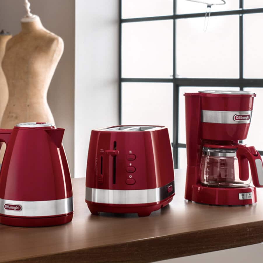 日本のどんなキッチンスペースにもぴったりとフィットするアクティブシリーズ。同じコンセプトでデザインされた5杯取りのコーヒーメーカーとポップアップトースターとセットで揃えられます。