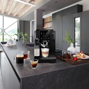 さまざまなインテリアにも寄り添うシンプルなデザインで、 豆から挽きたて、淹れたての本格的なレギュラーコーヒーに加えて、自動ミルク泡立て技術「ラテクレマ™ ホット」でふわふわ泡の「カプチーノ」も簡単にご自宅で楽しめます。