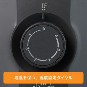 輻射熱で部屋全体を暖める「ゼロ風暖房」。温風を出さないため、肌も喉も乾燥しにくく、空気を汚さない。生活スタイルに合わせて使用できる24時間ON/OFFタイマーを採用。