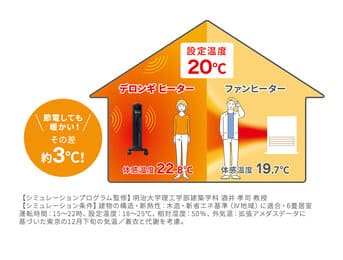 *¹デロンギ自社実験による。試験条件:新省エネルギー基準 外気温5℃、5面接触。日本電機工業会自主基準では約10畳まで。