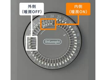 生活スタイルに合わせて使用できる24時間ON/OFFタイマーを採用。30分刻みで運転のON/OFFを予約できます。ONにしたい時間帯はピンを内側に、OFFにするにはピンを外側にするだけの簡単設定。ピンの太さを太くすることで、従来品に比べて操作性を向上しました。