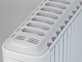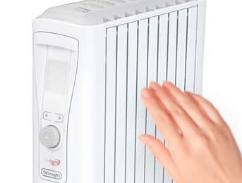 デロンギだけの先進技術で、放熱版を加工した「幅広X字型フィン」を採用、触れてもやけどしにくい平均表面温度約60℃を実現。