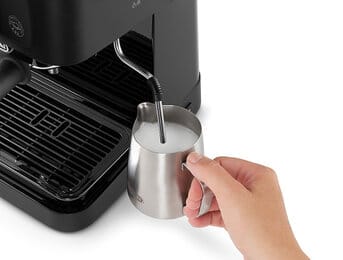 おいしいエスプレッソに欠かせない最適な抽出時の圧力9気圧、抽出温度90度を実現しているため、ご自宅で香り豊かな深い味わいをお楽しみいただけます。 ミルクフロッサー搭載で高温スチームでミルクをおいしく泡立てられ、カプチーノやカフェラテもお楽しみいただけます。