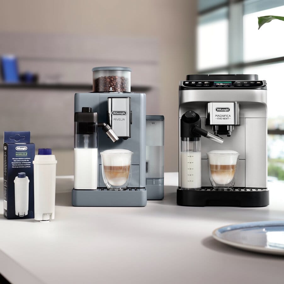„De'Longhi“ vandens filtras sugeria vandenyje esančius teršalus, todėl užtikrina gerą bei intensyvų kavos skonį ir natūralų aromatą. Jis taip pat minkština vandenį, mažina kalkių nuosėdų ir pailgina kavos aparato tarnavimo laiką. Šį vandens filtrą lengva sumontuoti. Rinkinyje 2 filtrai, kiekvieno užtenka iki 2 mėnesių.