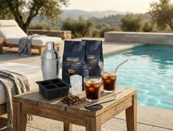 Köp en kaffemaskin och få ett iskaffe-kit på köpet – fyllt med tillbehör för härliga kaffestunder i solen.