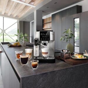 Kliv in i bean-to-cup-kaffets värld med De’Longhi Magnifica Start – maskinen som ger dig allt du behöver för att komma igång med dina espressobaserade favoritdrycker hemma. Den har exklusiv LatteCrema Hot Technology för att toppa dina drycker med ett fylligt mjölkskum samt ett urval av drycker som levereras med en enkel knapptryckning.