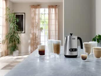• Välj mellan växtbaserade eller komjölkslägen för varmt skum eller skapa kallt mjölkskum